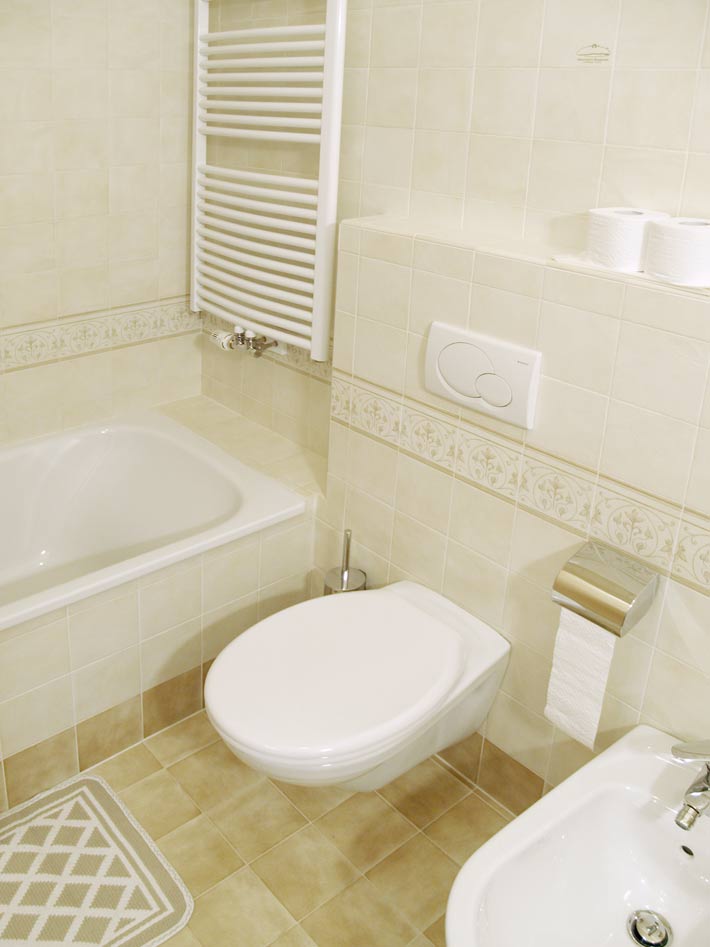- bagno con vasca, bidet, WC, lavandino, lavatrice, fon