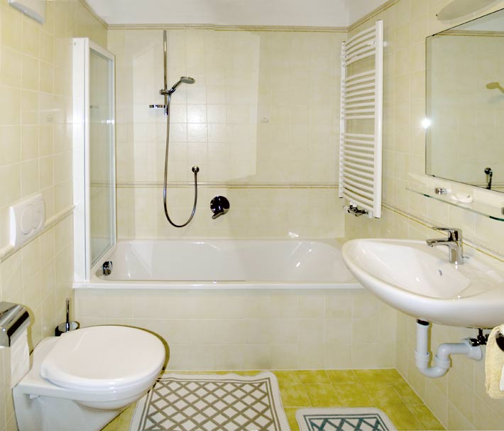 - bagno con vasca, bidet, WC, lavandino, lavatrice, fon